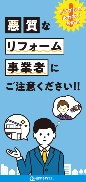 事業者が名乗らなかったり、勧誘目的であることを明言していなかったりするなど、少しでもおかしいと思ったり、不安だったら第三者に相談しましょう。住まいるダイヤルは、国土交通大臣指定の住宅専門の相談窓口で、年間3万件以上の相談を受けています。リフォームの相談は、必要に応じて全国の弁護士会で弁護士と建築士のペアによる対面相談(専門家相談)を原則無料で受けることもできます。また、契約前に限り、見積書の内容をチェックするサービスを行っています。