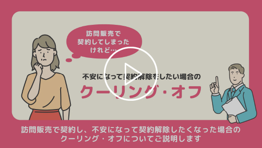 - ・クーリング・オフが使えない場合でも、事業者の発言内容や挙動によっては契約の取消し等ができる場合もあります。消費生活センターや住まいるダイヤルにご相談ください。